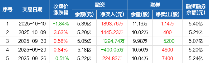 福斯特:融资净买入1893.76万元,融资余额5.39亿元(10-10)