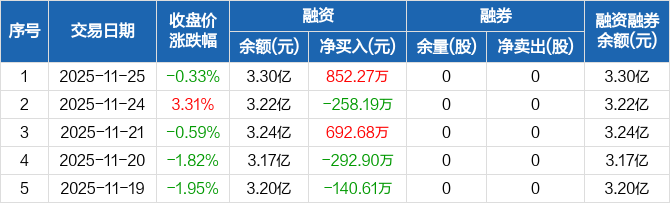 豪能股份:融资净买入852.27万元,融资余额3.3亿元(11-25)