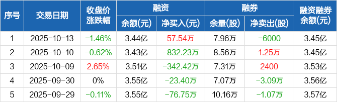 坤彩科技:融资净买入57.54万元,融资余额3.44亿元(10-13)