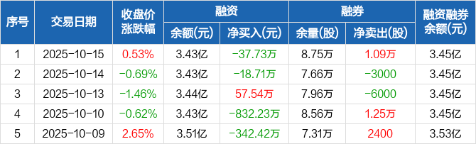 坤彩科技:融资净偿还37.73万元,融资余额3.43亿元(10-15)