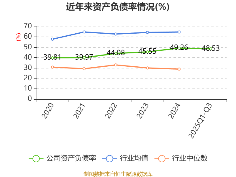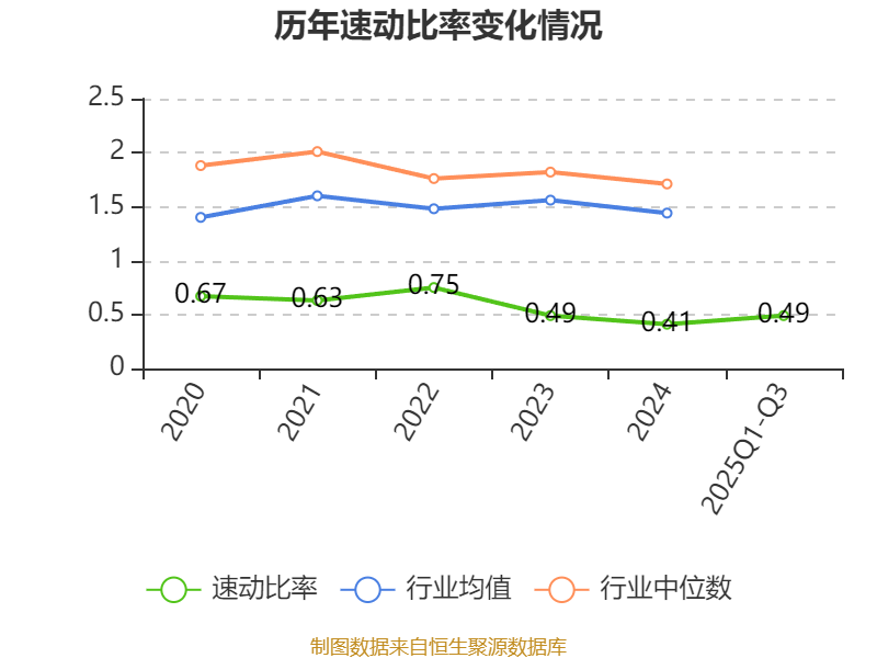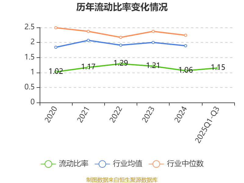 2025年前三季度,公司流动比率为1.15,速动比率为0.49。