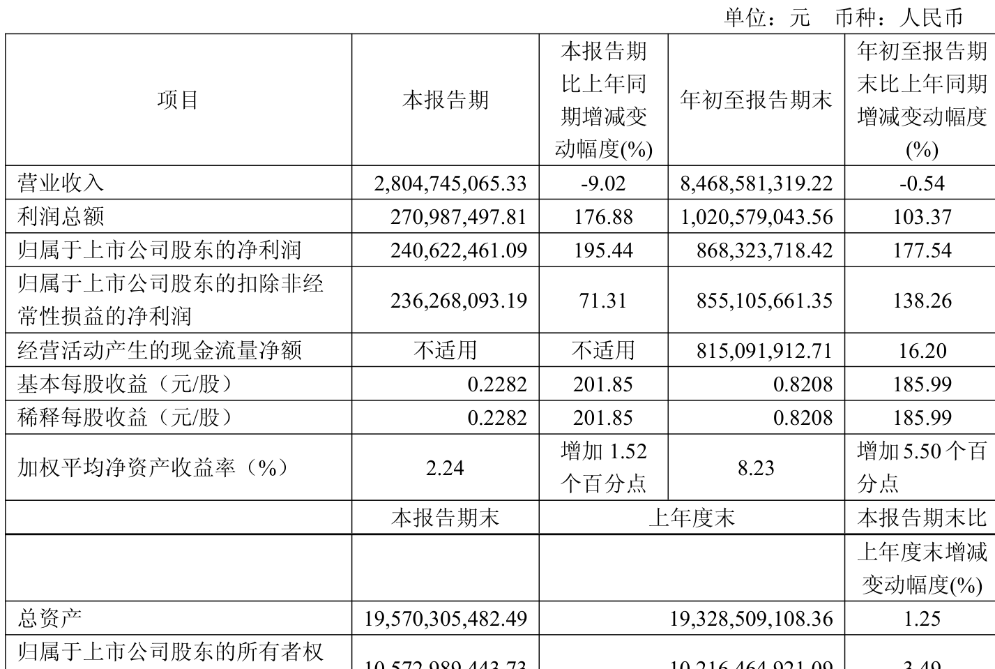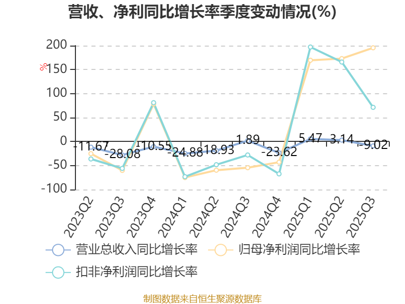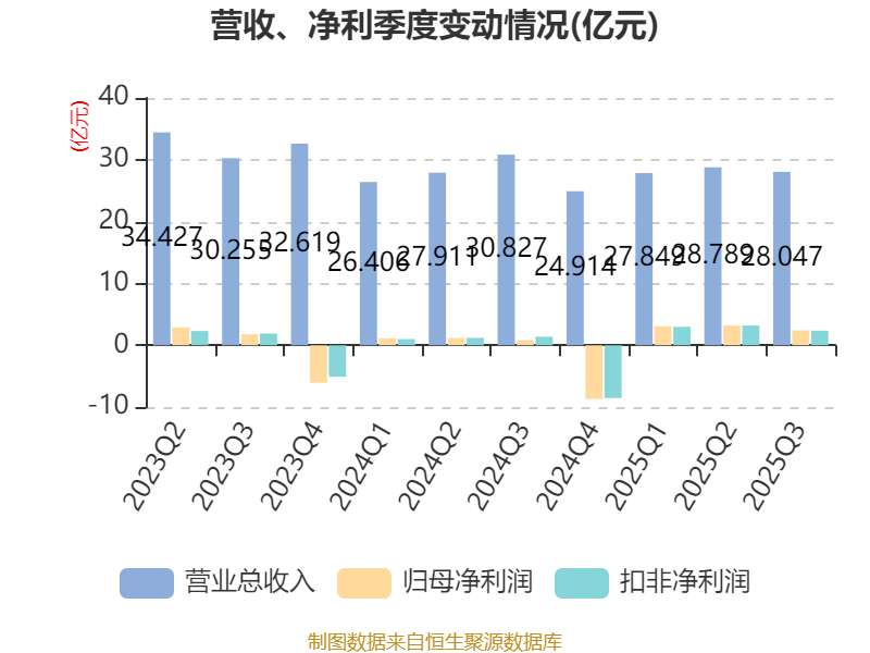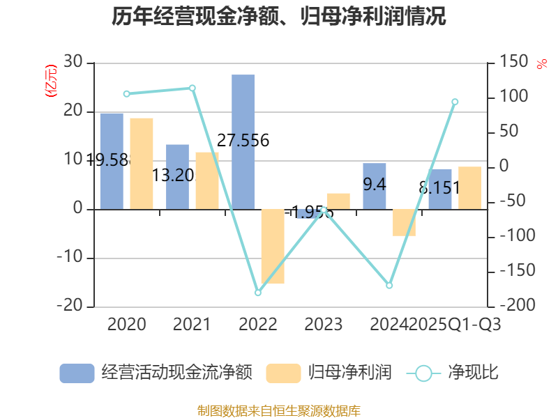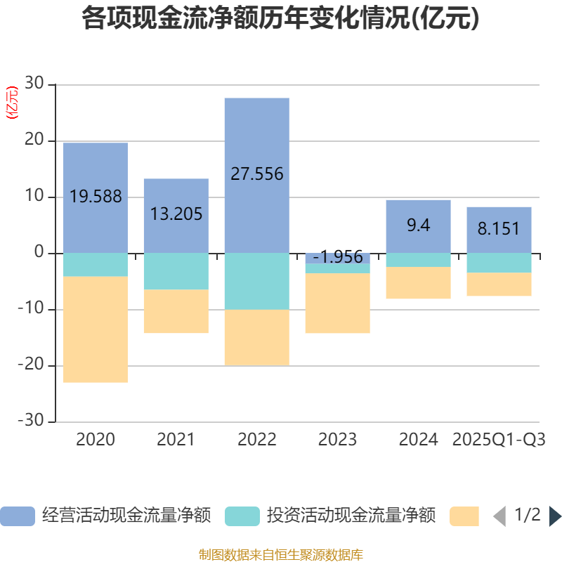 2025年前三季度,公司经营活动现金流净额为8.15亿元,同比增长16.2%;筹资活动现金流净额-4.12亿元,同比减少1.71亿元;投资活动现金流净额-3.54亿元,上年同期为-1.95亿元。