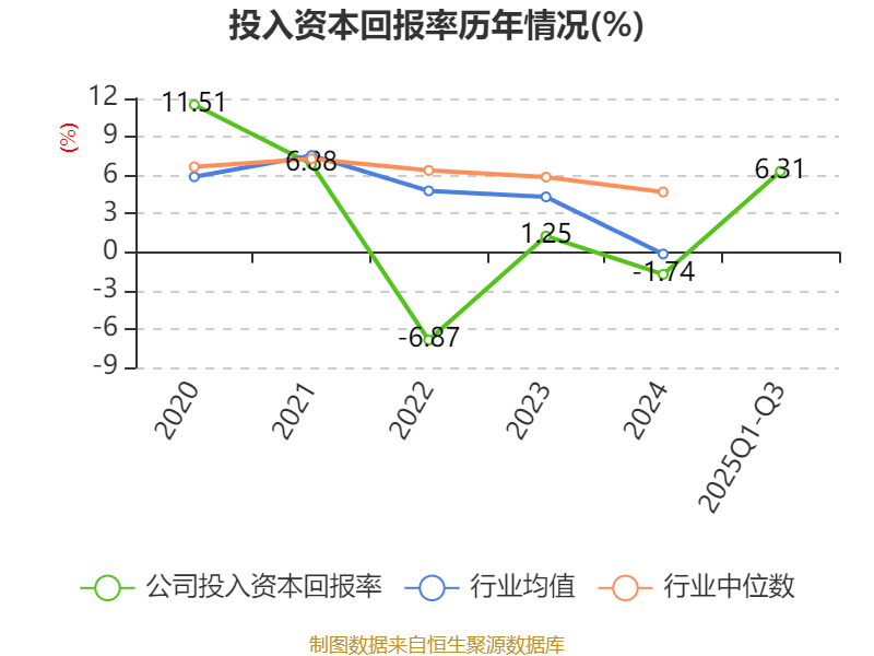 盈利能力方面, 2025年前三季度公司加权平均净资产收益率为8.23%,同比上升5.5个百分点。公司2025年前三季度投入资本回报率为6.31%,较上年同期上升4.55个百分点。