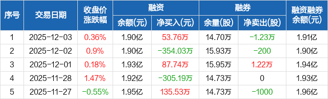 桃李面包:融资净买入53.76万元,融资余额1.9亿元(12-03)