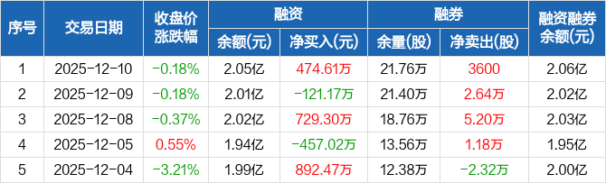 桃李面包:融资净买入474.61万元,融资余额2.05亿元(12-10)