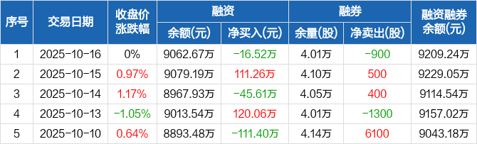飞科电器:融资净偿还16.52万元,融资余额9062.67万元(10-16)