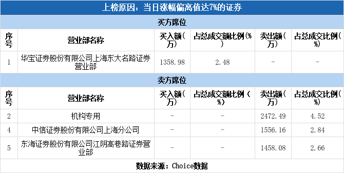机构现身龙虎榜,武进不锈涨停(09-25)
