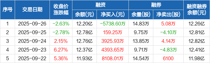数据港:融资净偿还5738.6万元,融资余额12.2亿元(09-26)