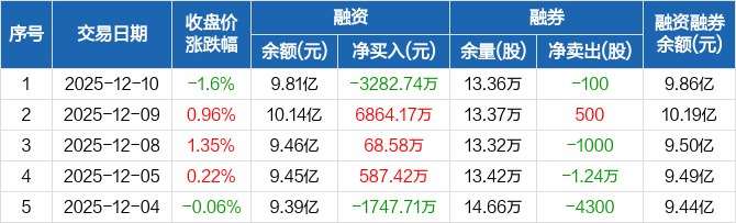 数据港:融资净偿还3282.74万元,融资余额9.81亿元(12-10)
