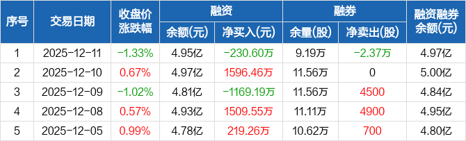 新华网:融资净偿还230.6万元,融资余额4.95亿元(12-11)