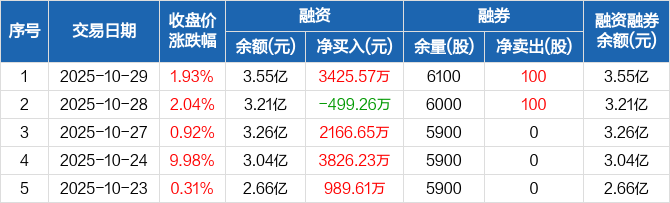 春秋电子:融资净买入3425.57万元,融资余额3.55亿元(10-29)