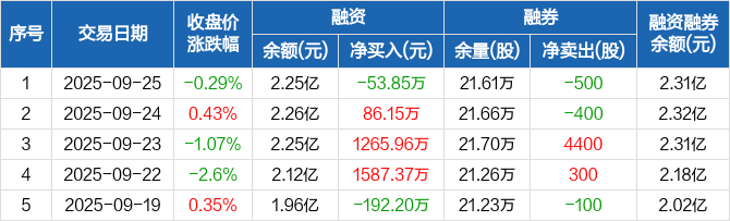 晨光股份:融资净偿还53.85万元,融资余额2.25亿元(09-25)