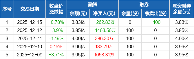 龙蟠科技:融资净偿还262.83万元,融资余额3.83亿元(12-15)