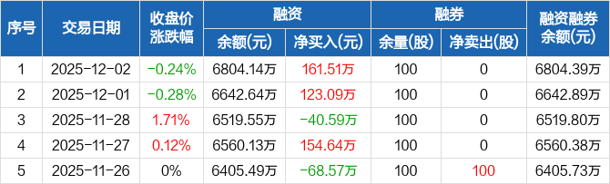 牧高笛:融资净买入161.51万元,融资余额6804.14万元(12-02)