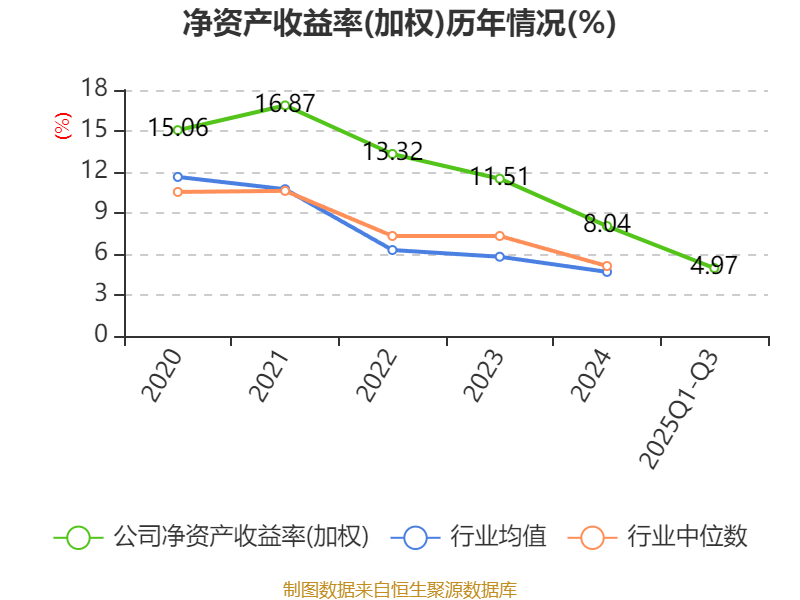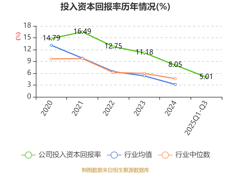 盈利能力方面, 2025年前三季度公司加权平均净资产收益率为4.97%,同比下降0.84个百分点。公司2025年前三季度投入资本回报率为5.01%,较上年同期下降0.71个百分点。