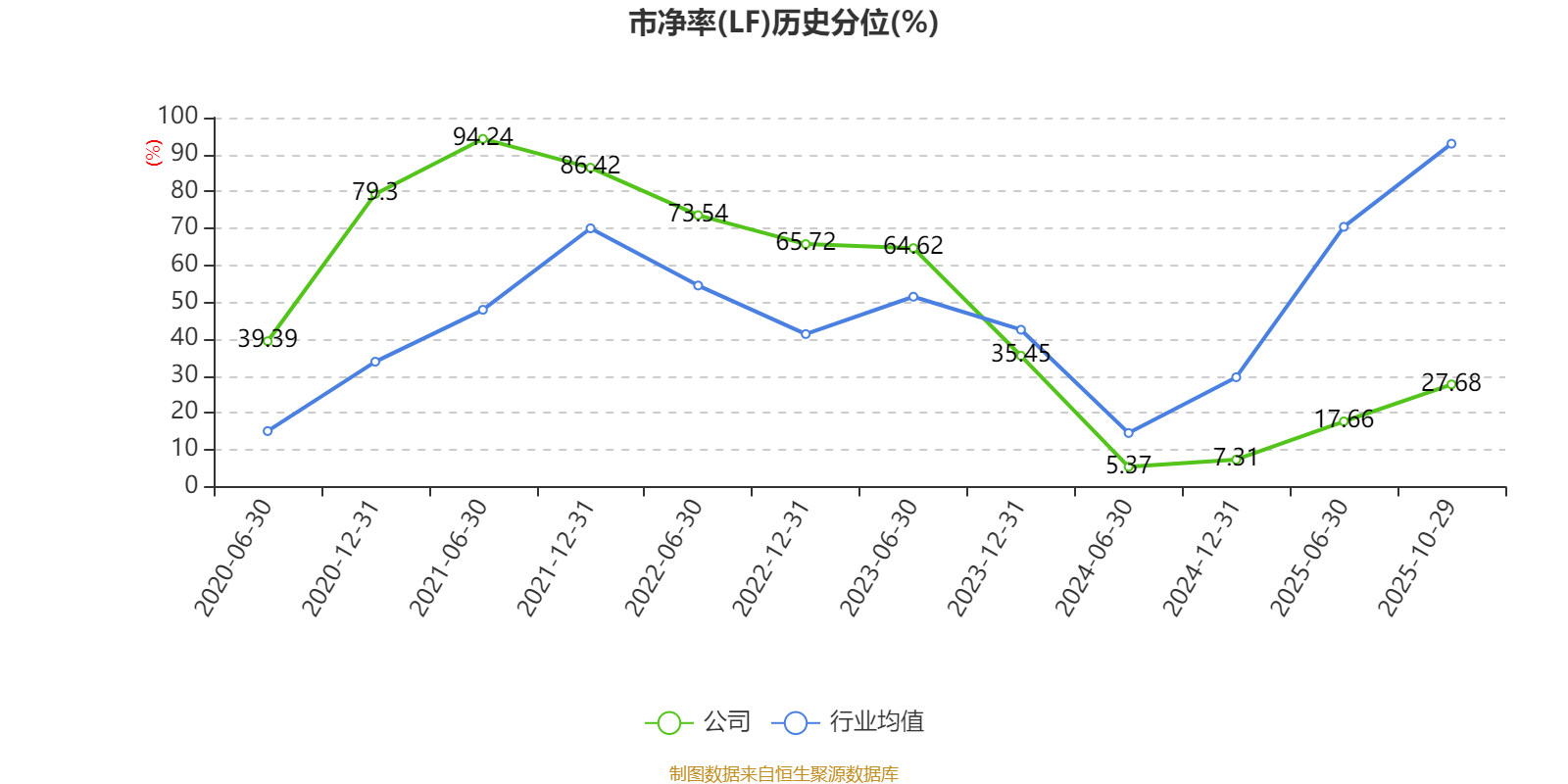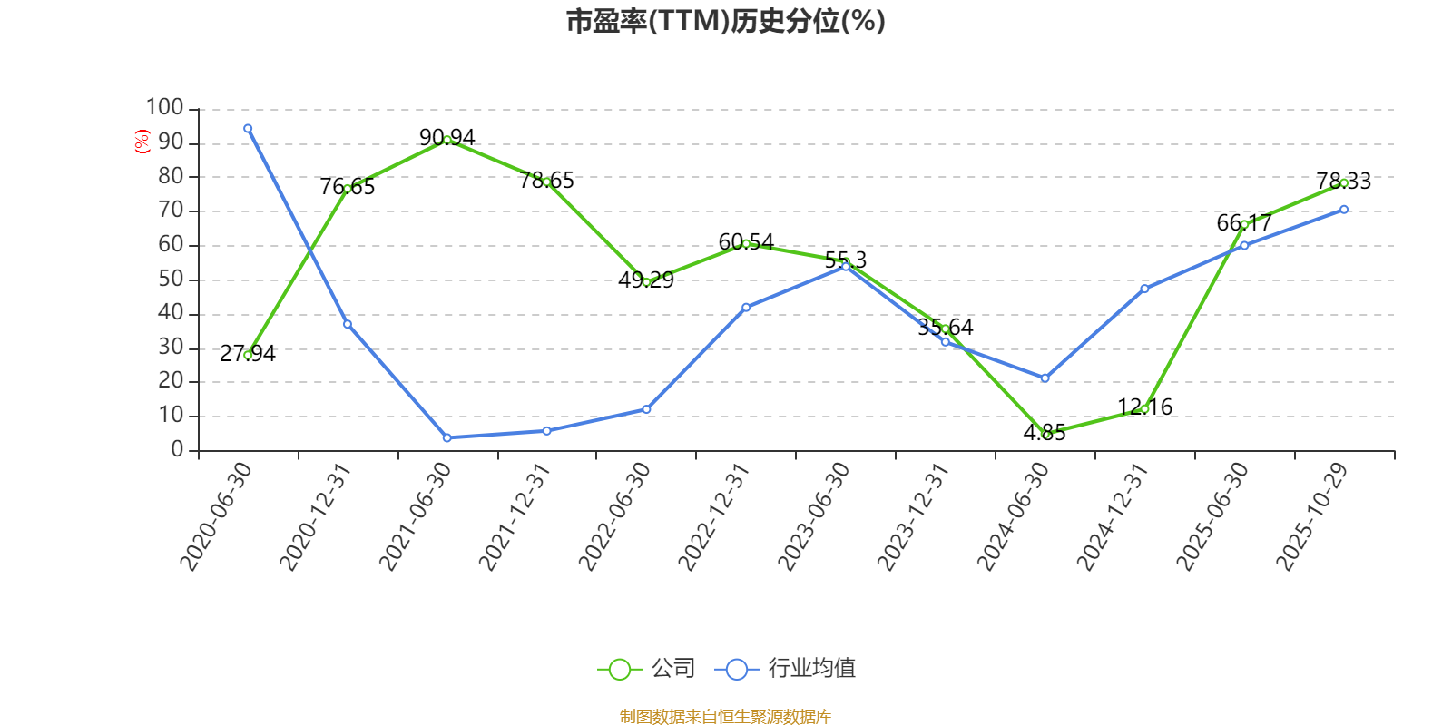 市盈率、市净率为负时,不显示当期分位数,会导致折线图中断。