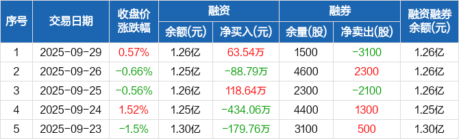 苏博特:融资净买入63.54万元,融资余额1.26亿元(09-29)