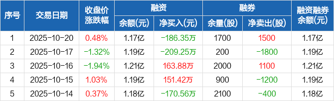苏博特:融资净偿还186.35万元,融资余额1.17亿元(10-20)