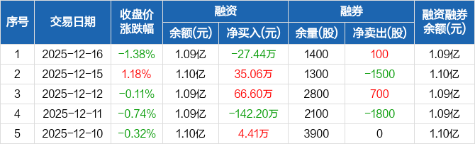 苏博特:融资净偿还27.44万元,融资余额1.09亿元(12-16)