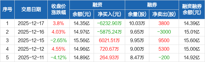 世运电路:融资净偿还6232.9万元,融资余额14.35亿元(12-17)