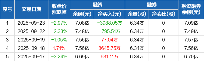 博敏电子:融资净偿还3988.05万元,融资余额7.08亿元(09-23)