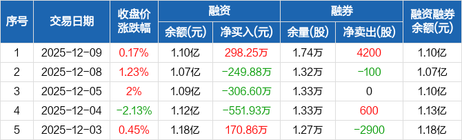 三孚股份:融资净买入298.25万元,融资余额1.1亿元(12-09)