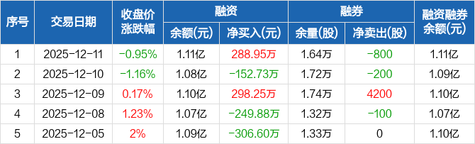 三孚股份:融资净买入288.95万元,融资余额1.11亿元(12-11)