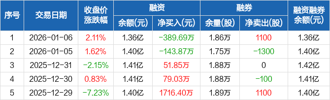 三孚股份:融资净偿还389.69万元,融资余额1.36亿元(01-06)
