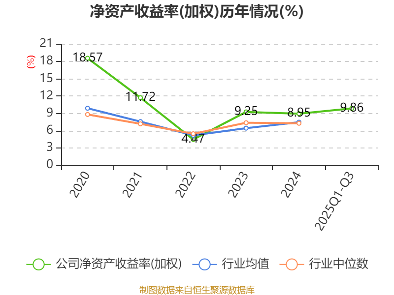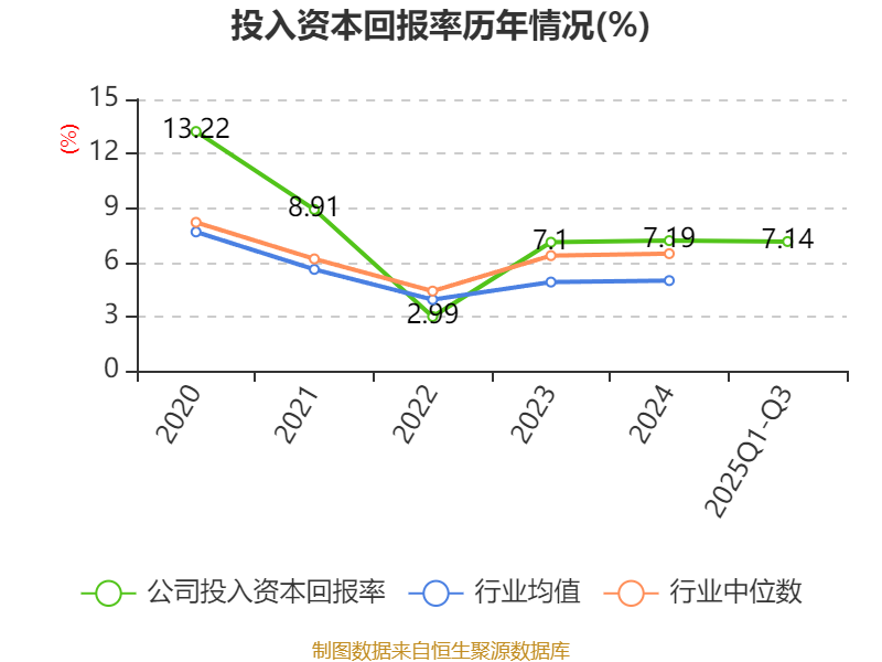盈利能力方面, 2025年前三季度公司加权平均净资产收益率为9.86%,同比上升3.78个百分点。公司2025年前三季度投入资本回报率为7.14%,较上年同期上升2.05个百分点。