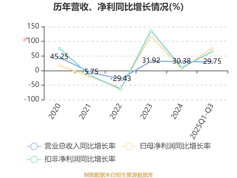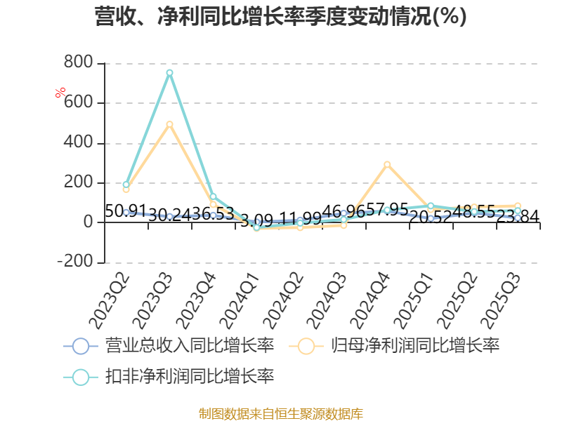 资产重大变化方面,截至2025年三季度末,公司固定资产较上年末减少7.58%,占公司总资产比重下降7.85个百分点;在建工程合计较上年末增加88.94%,占公司总资产比重上升5.61个百分点;货币资金较上年末增加81.33%,占公司总资产比重上升3.34个百分点;应收票据及应收账款较上年末减少8.33%,占公司总资产比重下降3.25个百分点。