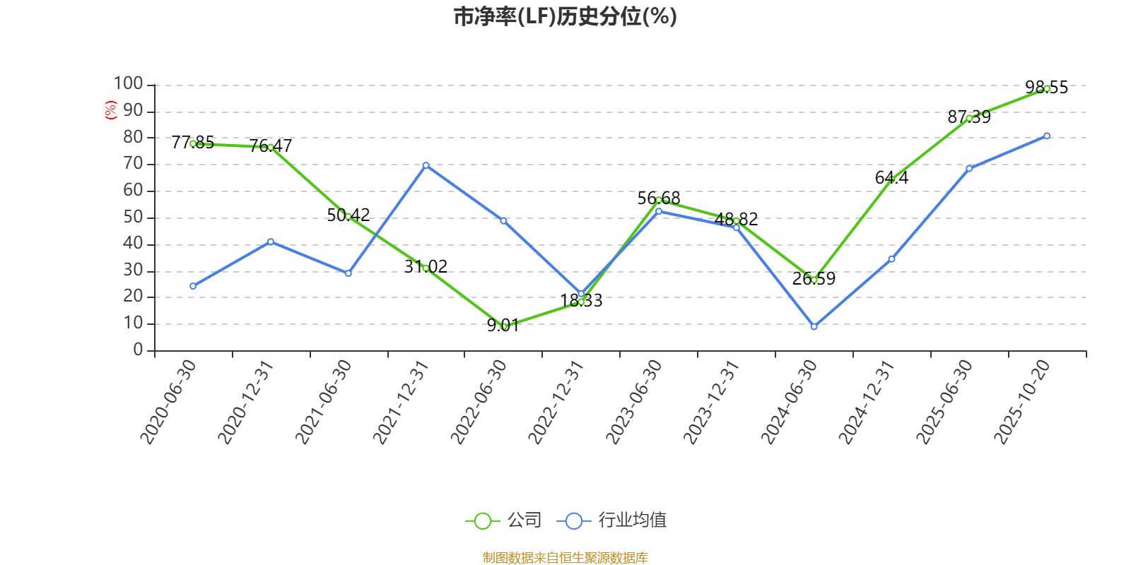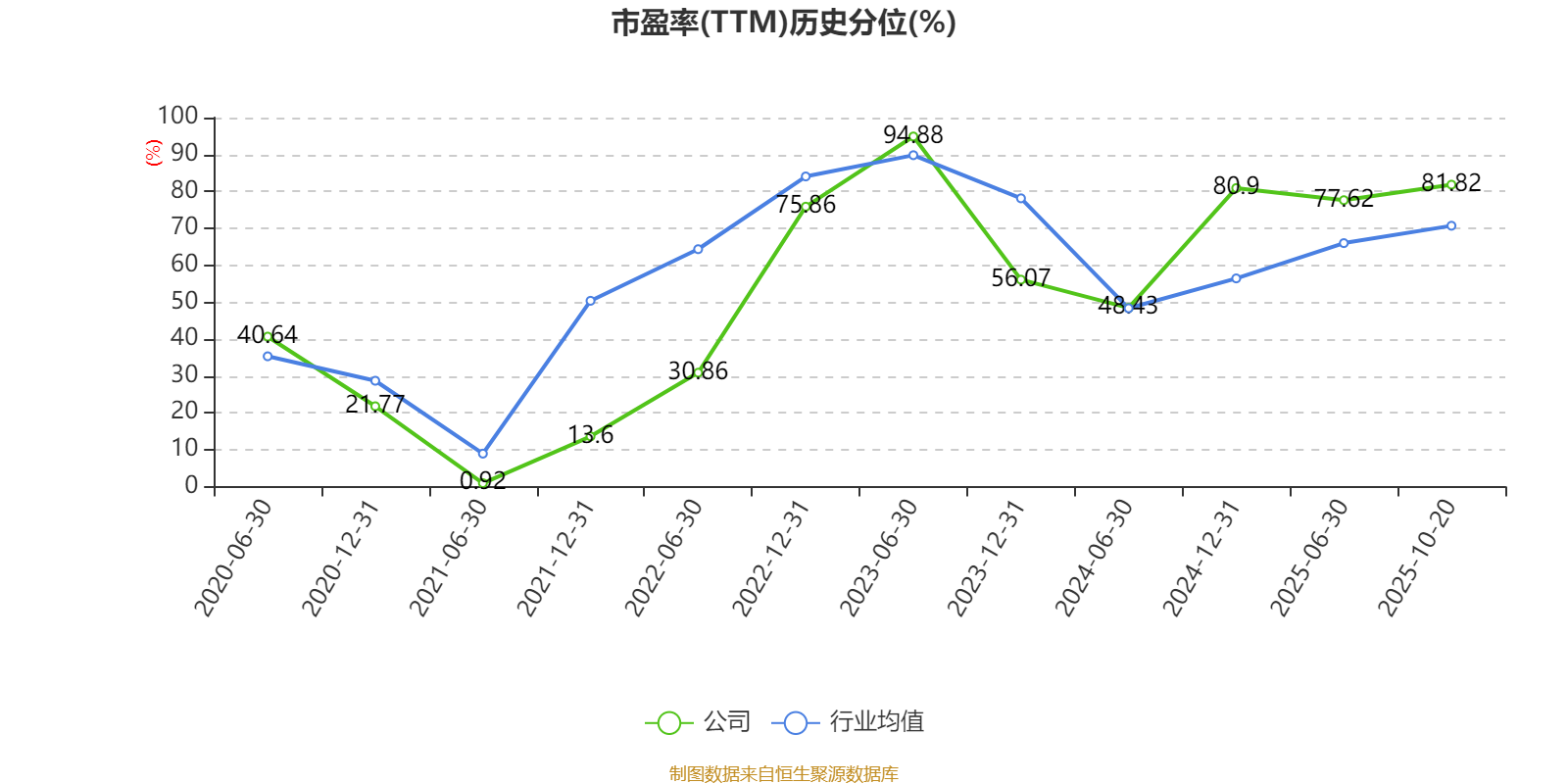 市盈率、市净率为负时,不显示当期分位数,会导致折线图中断。