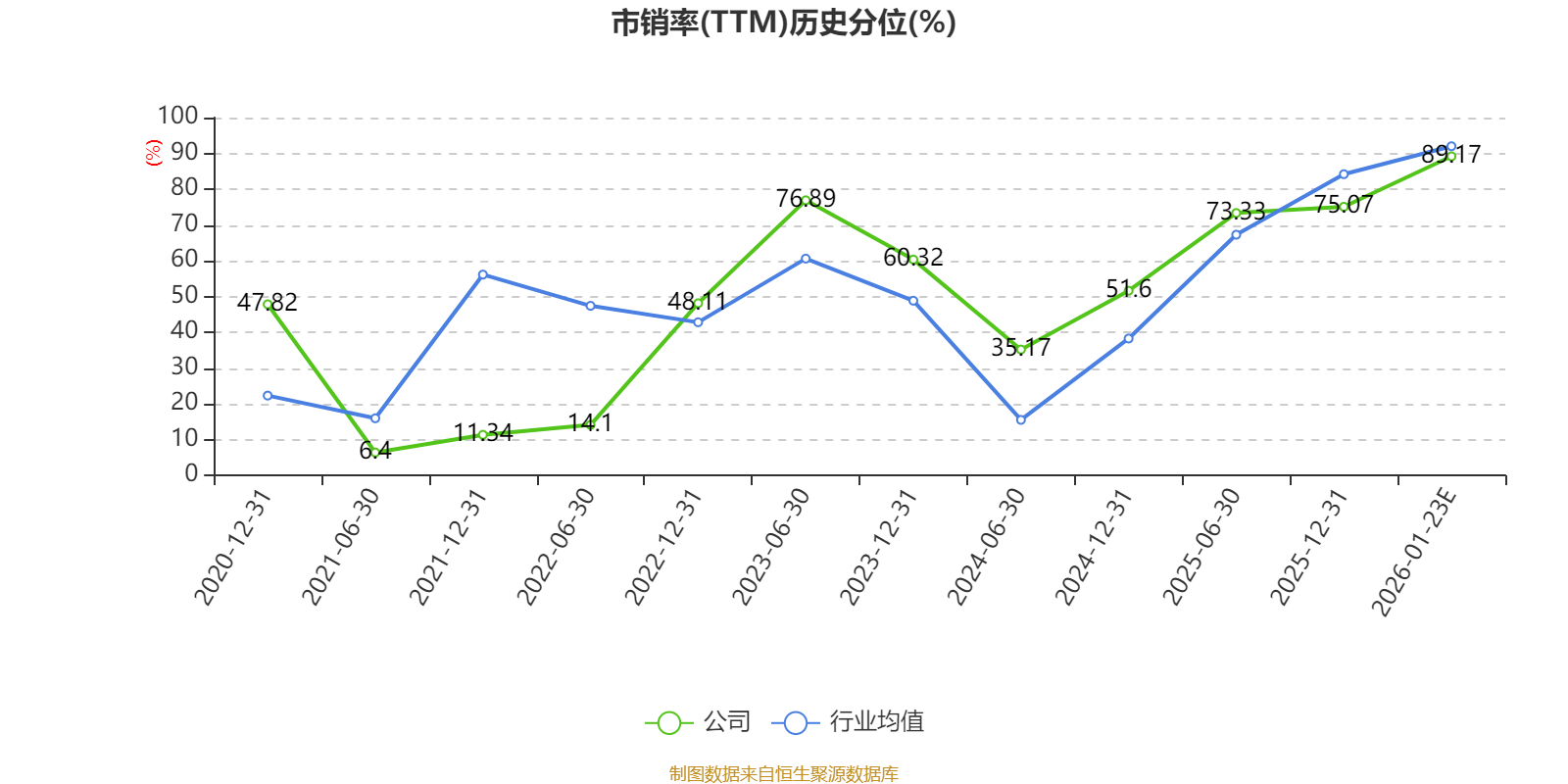 文中市盈率和市销率采用TTM方式,即以截至最近一期财报(含预报)12个月的数据计算。市净率采用LF方式,即以最近一期财报数据计算。三者的分位数计算区间均为公司上市以来至最新公告日。