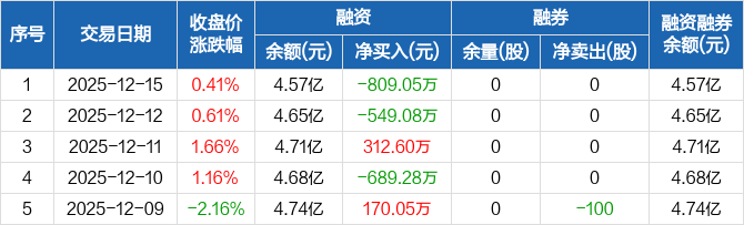 银龙股份:融资净偿还809.05万元,融资余额4.57亿元(12-15)