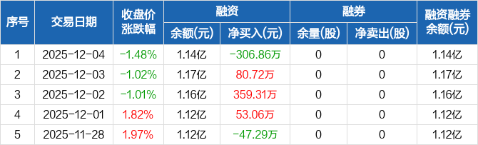 泉峰汽车:融资净偿还306.86万元,融资余额1.14亿元(12-04)