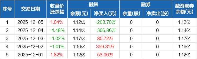 泉峰汽车:融资净偿还203.7万元,融资余额1.12亿元(12-05)