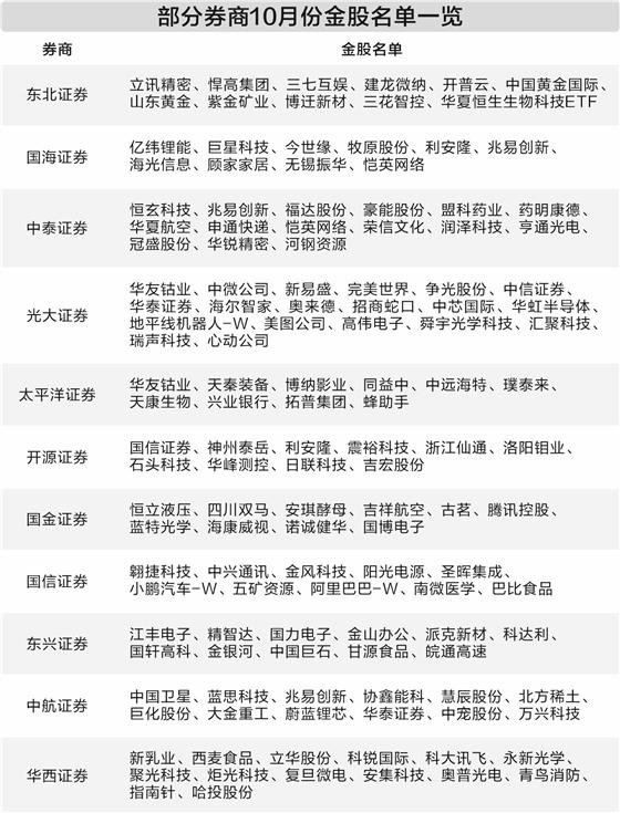 近日,券商10月份金股策略报告渐次披露,机构最新关注的月度重点标的浮出水面。