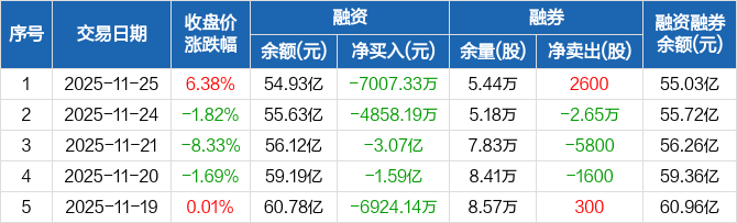 兆易创新:连续6日融资净偿还累计9.29亿元(11-25)