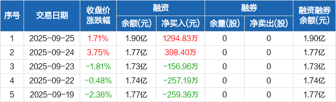 麦迪科技:融资净买入1294.83万元,融资余额1.9亿元(09-25)