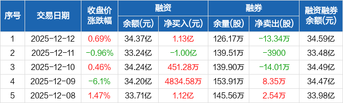 洛阳钼业:融资净买入1.13亿元,两市排名第19(12-12)
