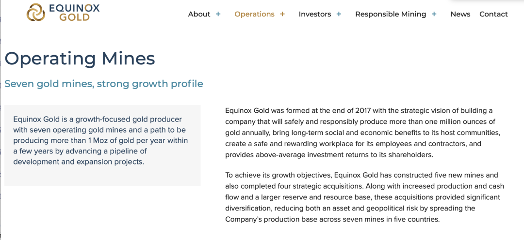 据披露,Equinox Gold是一家在多伦多证券交易所和纽约证券交易所上市的加拿大矿业企业,在加拿大及美洲多国拥有多处在产矿山资产,同时持有一系列在建及扩产项目储备。公司官网显示,旗下拥有七座正在运营的金矿,并计划通过推进一系列开发和扩建项目,实现每年生产超过100万盎司黄金的目标。