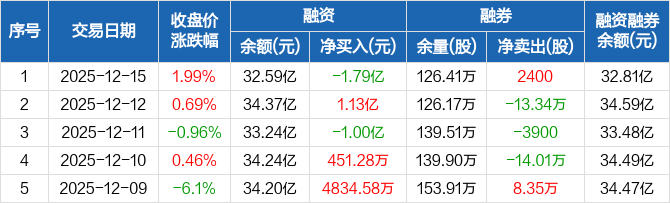 洛阳钼业:融资净偿还1.79亿元,两市排名第六(12-15)
