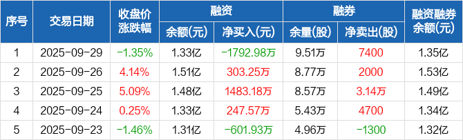 继峰股份:融资净偿还1792.98万元,融资余额1.33亿元(09-29)