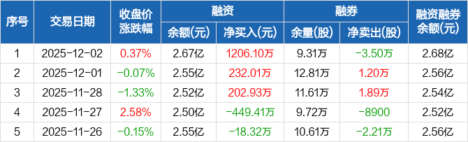 继峰股份:融资余额2.67亿元,创历史新高(12-02)