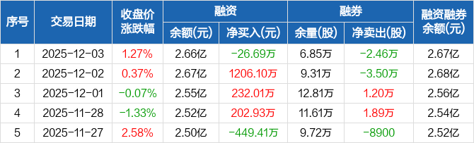 继峰股份:融资净偿还26.69万元,融资余额2.66亿元(12-03)