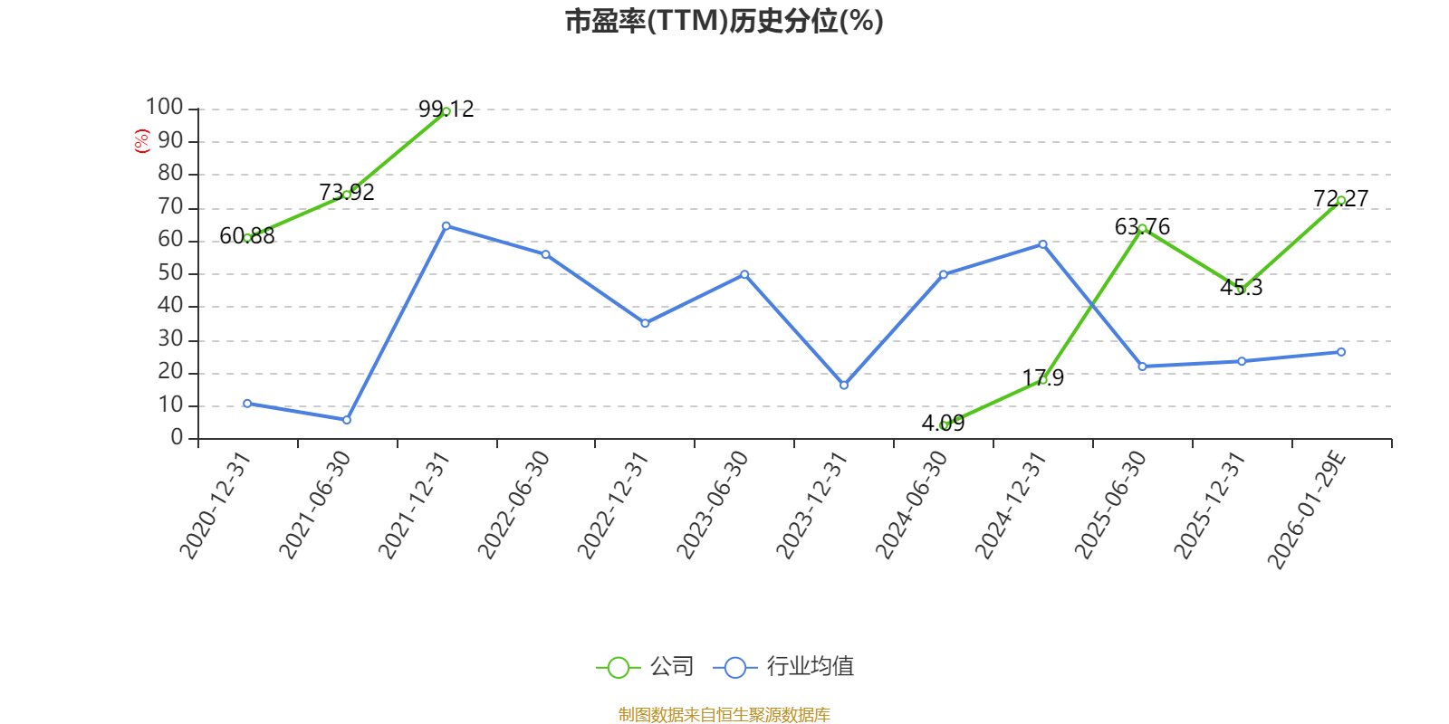 以本次披露业绩预告均值计算,公司近年市盈率(TTM)图如下所示: