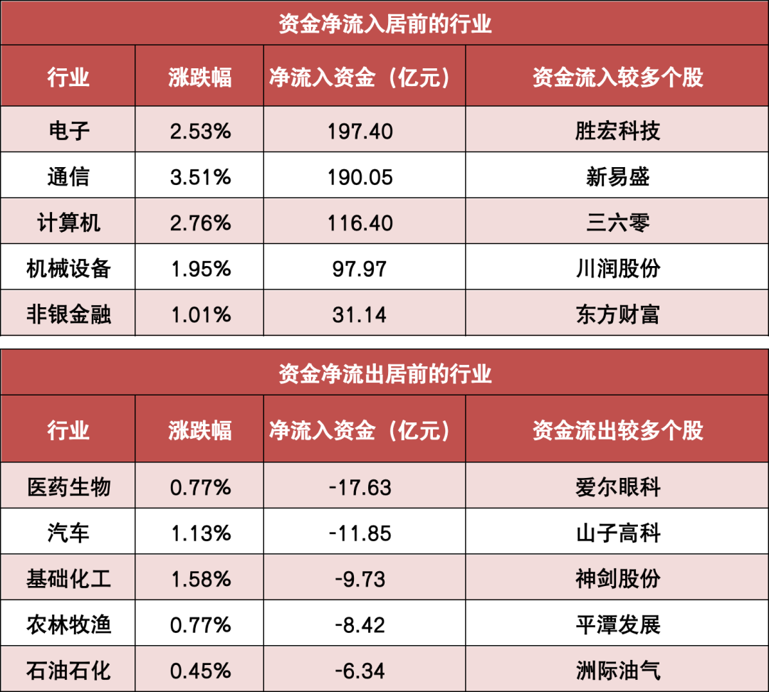 【9日资金路线图】两市主力资金净流入超110亿元,电子等行业实现净流入