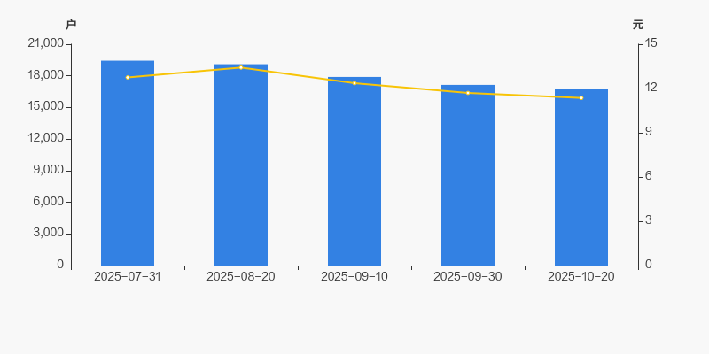 2025年7月31日至今,公司股东户数显著下降,区间跌幅为13.71%。2025年7月31日至2025年10月20日区间股价下降10.90%。