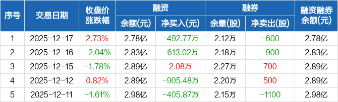 永和股份:融资净偿还492.77万元,融资余额2.78亿元(12-17)
