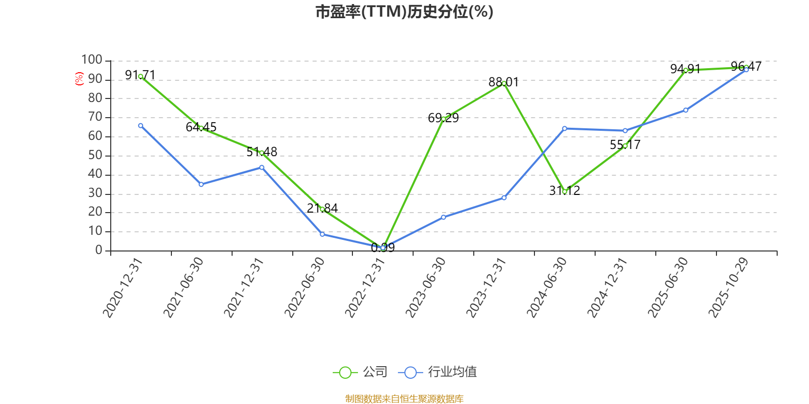 市盈率、市净率为负时,不显示当期分位数,会导致折线图中断。