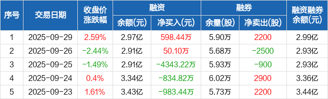九丰能源:融资净买入598.44万元,融资余额2.97亿元(09-29)